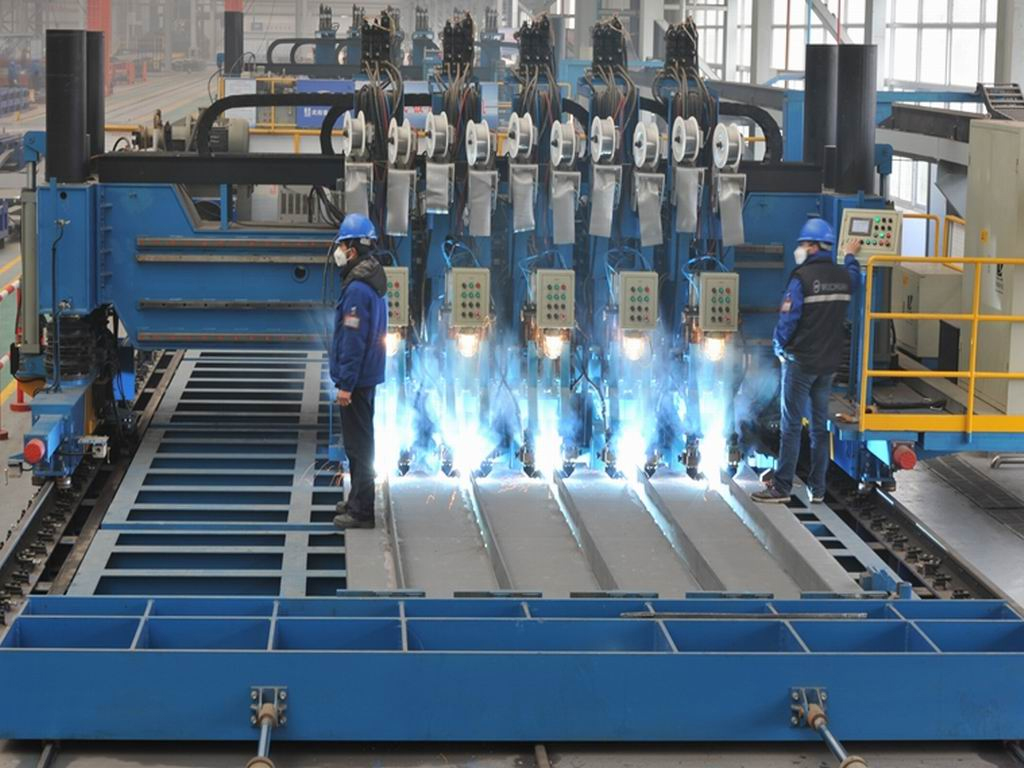 本机主要用来将板肋压紧在底板上,迫使板肋与底板装配线重合,同时消除板肋与底板接触处间隙,并举行5根板肋两侧自动定位点焊。