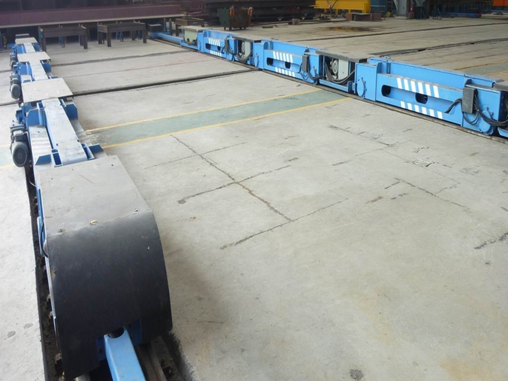 ´¬Ìå·Ö¶ÎÔËËĮ́³µÊÇרÃÅÓÃÀ´ÔËËÍ´óÐͷֶεÄ×°±¸,¿ÉÒÔ½«º¸½Ó×ݹǼ°èì²ÄºóµÄ·Ö¶ÎÔÚÆ½ÃæÏßÉϾÙÐÐÔËËÍ,ÓÉÈô¸É¸öС³µ×°ÓÚ¹ìµÀÉÏÔËÐеÄÁ½×é³µÌå×é³É,¸Ã³µÅäÓж¥Éý¹¦Ð§ÒԱ㶥ÉýºÍÔËËÍÆ½Ãæ·Ö¶Î¡£µ±½«¹¤¼þÔËË͵½Ò»¸ö¹¤Î»¼Ó¹¤Ê±£¬Æ½Ãæ·Ö¶Î±»°²ÅÅÔÚ¾®×ÖÆ½Ì¨ÉÏ£¬ÒÔÊǵ±·Ö¶Î²»ÐèÒªÔËÊäʱ£¬ÒºÑ¹Ì¨³µ½«´¦ÔÚ²»¸ºÖØ×´Ì¬¡£Ã¿×é³µµÄ¶¥Éýϵͳ¿ÉÒÔµ¥¶ÀÉÏÉýϽµ£¬Ò²¿ÉÒÔÁ½×éÁªÔË,×î¸ß³ÐÔØÁ¦¿É´ï450¶Ö¡£