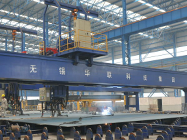 该机接纳三弧三丝四电源的埋弧焊方法,焊接方法为单面双面成型, 该机主要由主门架、焊接小车、焊枪上下升降装置、焊枪左右横移装置、埋弧焊跟踪装置、上部焊剂循环装置、焊接参数存贮器(控制器)、电磁平台装置、铜衬垫装置、焊剂铺撒扫除小车、底部焊剂接纳装置、埋弧焊接系统等组成 。该机属于海内首创,现已被大连船舶重工、扬子鑫福造船、舜天造船、振华港机等海内各大船厂使用 。