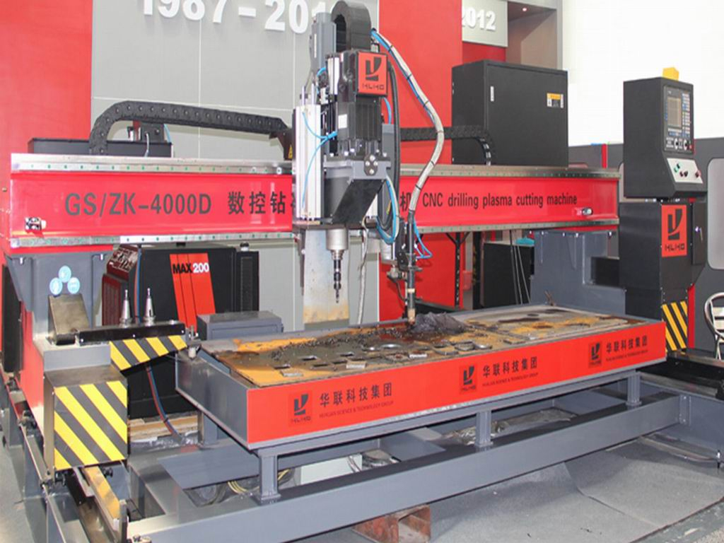 GS/ZKⅡ数控钻切一体割机,该机在数控等离子切割机上设置了高速钻削主轴、伺服升降滑台、金属板厚检测单位、铁板压紧装置、刀具长度检测装置、刀库组件、冷却装置,接纳西班牙FAGOR控制系统和伺服系统。能针对种种幅面的板材举行钻孔、攻丝和切割等加工,实现了多种加工工序一体化。